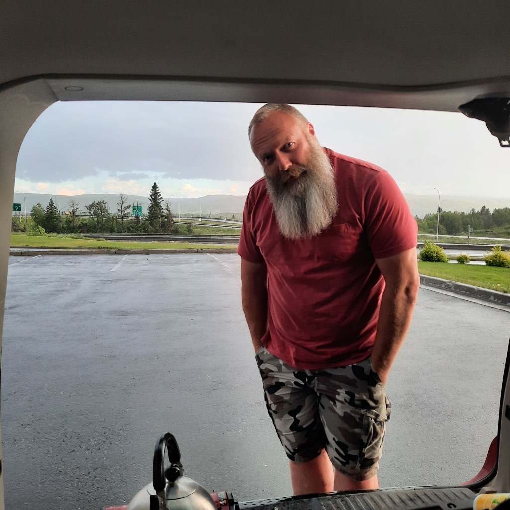 We decided to make the trip as convenient for us as possible. We packed bedding, camp stove and a cooler with homemade sandwiches and baked goods. We did everything we could to minimize going to coffee shops etc. We slept in the car at rest station in Quebec going and in NB on the way home. It was awesome, it was also very bitter sweet as it was our first trip in 13 years without our beloved baby, Murdoch:(